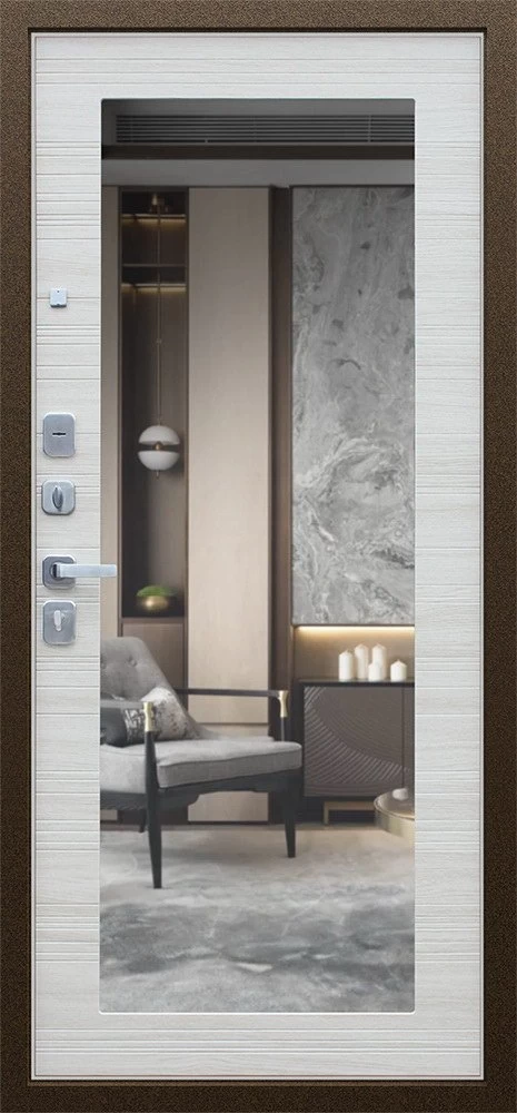 Надежная входная Дверь Спартак с зеркалом Акация Светлая Поперечная премиум класса по цене 32 000 руб. Большая толщина стали защитит от проникновения в ваш дом, квартиру или коттедж. Используется очень качественная фурнитура: замки, цилиндры, ручки, защелки. Покрытие и отделка двери изготовлено под внимательным контролем производителя. Дверь имеет долгий срок службы и гарантию.