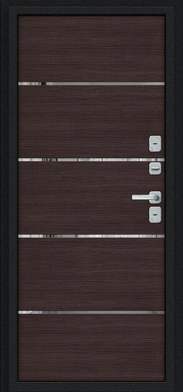 Надежная входная Дверь Браво Thermo Лайн/BChrome Букле черное/Wenge Melinga премиум класса по цене 42 050 руб. Большая толщина стали защитит от проникновения в ваш дом, квартиру или коттедж. Используется очень качественная фурнитура: замки, цилиндры, ручки, защелки. Покрытие и отделка двери изготовлено под внимательным контролем производителя. Дверь имеет долгий срок службы и гарантию.